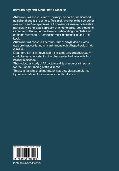 Alzheimer's disease is one of the major scientific, medical and social challenges of our time. This book, the first in the new series Research and Perspectives in Alzheimer's Disease, presents a particularly up-to-date approach of immunological and biochemical aspects. It is written by the most outstanding scientists and contains recent data. The following are among the most interesting ideas contained in this book: - Alzheimer's disease is a cerebral form of amyloidosis. - some data are in accordance with an immunological hypothesis of this disease. - degeneration of microvessels - including amyloid angiopathy - could be very important in the changes in the brain with Alzheimer's disease. - the molecular study of A4 protein and its precursor is important for the understanding of the disease. This synthesis by prominent scientists provides a stimulating hypothesis about the determinism of the disease.