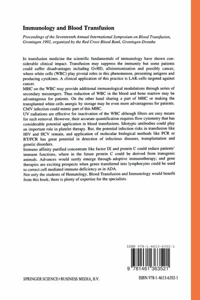 In transfusion medicine the scientific fundamentals of immunology have had a considerable clinical impact. Transfusion may suppress the immunity but some patients could suffer disadvantages including GvHD, alloimmunisation and possible cancer, where white cells (WBC) play pivotal roles in this phenomenon, presenting antigens and producing cytokines. A clinical application of this practice is LAK-cells targeted against cancer. MHC on the WBC may provide additional immunological modulations through series of secondary messengers. Thus reduction of WBC in the blood and bone marrow may be advantageous for patients. On the other hand, sharing a part of MHC or making the transplanted white cells anergic by storage may be even more advantageous for patients. CMV infection could mimic part of this MHC.