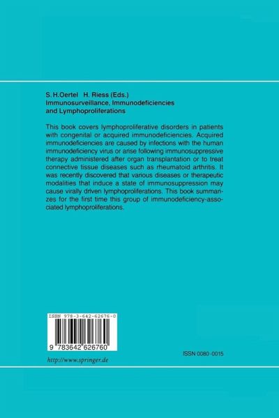 Immunosurveillance, Immunodeficiency and Lymphoproliferations.- Clinicopathological Characteristics of Post-Transplant Lymphoproliferative Disorders.- Latrogenic Lymphoproliferative Disorders in Non-Transplantation Settings.- The Role of Kaposi's Sarcoma-Associated Herpesvirus (KSHV/HHV-8) in Lymphoproliferative Diseases.- Dendritic Cells for the Induction of EBV Immunity.- NF-?B Inhibition in EBV-Transformed Lymphoblastoid Cell Lines.- Epstein-Barr Viral Load as a Tool to Diagnose and Monitor Post-Transplant Lymphoproliferative Disease.- The Role of Immunosuppression in Lymphoma.- Indentification of Prognostic Factors in Post-Transplant Lymphoproliferative Disorders.- Methods and Objectives of a Large US Multicenter Case-Control Study of Post-Transplant Lymphoproliferative Disorder in Renal Transplant Patients.- Antiviral Treatment of Epstein-Barr Virus-Associated Lymphoproliferations.- Low-Dose Chemotherapy for Children with Post-Transplant Lymphoproliferative Disease.- Engineered Antibody for Treating Lymphoma.- Treatment of Post-Transplant Lymphomas with Anti-B-Cell Monoclonal Antibodies.- Epstein-Barr Virus (EBV)-Specific Cytotoxic T Lymphocytes for the Prevention and Treatment of EBV-Associated Post-Transplant Lymphomas.- Non-Myeloablative Stem Cell Transplantation for Congenital Immunodeficiencies.- Prognostic Factors in the Treatment of Human Immunodeficiency Virus-Associated Non-Hodgkin's Lymphoma.- Infusional CDE with Rituximab for the Treatment of Human Immunodeficiency Virus-Associated Non-Hodgkin's Lymphoma: Preliminary Results of a Phase I/II Study.