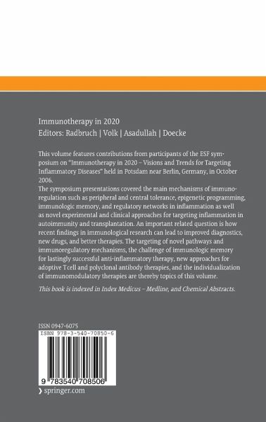 Nature's Choice of Genes Controlling Chronic Inflammation.- Targeting of Memory.- Post-transcriptional Regulators in Inflammation: Exploring New Avenues in Biological Therapeutics.- Immunomodulatory Therapies: Challenges of Individualized Therapy Strategies.- T Cell Therapies.- The Future of Antibody Therapy.