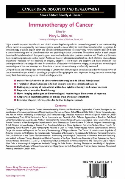 Expert bench and clinical scientists join forces to concurrently review both the state-of-the-art in tumor immunology and its clinical translation into promising practical treatments. The authors explain in each chapter the scientific basis behind such therapeutic agents as monoclonal antibodies, cytokines, vaccines, and T-cells, and illustrate their clinical manipulation to combat cancer. Additional chapters address statistical analysis-both of clinical trials and assay evaluations-methods for the discovery of antigens, adoptive T cell therapy, and adaptive and innate immunity. The challenges in clinical trial design, the need for biomarkers of response-such as novel imaging techniques and immunologic monitoring-and the new advances and directions in cancer immunotherapy are also fully examined.