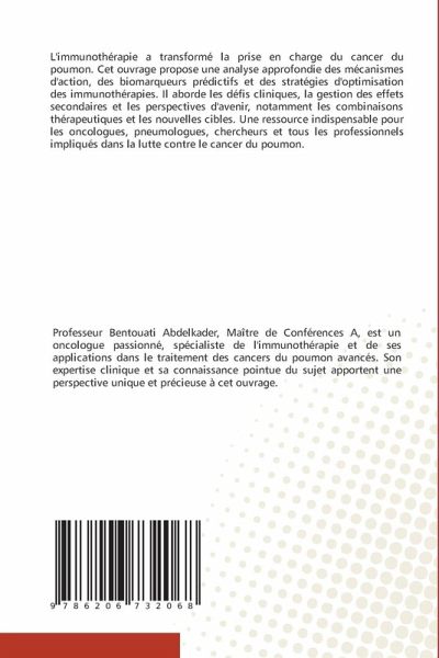 L'immunothérapie a transformé la prise en charge du cancer du poumon. Cet ouvrage propose une analyse approfondie des mécanismes d'action, des biomarqueurs prédictifs et des stratégies d'optimisation des immunothérapies. Il aborde les défis cliniques, la gestion des effets secondaires et les perspectives d'avenir, notamment les combinaisons thérapeutiques et les nouvelles cibles. Une ressource indispensable pour les oncologues, pneumologues, chercheurs et tous les professionnels impliqués dans la lutte contre le cancer du poumon.