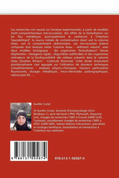 Les recherches ont reposé sur l'analyse expérimentale, à partir de modèles multi-compartimentaux (microcosmes), des effets de la bioturbation sur les flux métalliques (principalement le cadmium) à l'interface "eau/sédiment", la source initiale de contamination étant soit la colonne d'eau, soit le compartiment sédimentaire. Les microcosmes étaient composés d'un biotope mixte "colonne d'eau sédiment naturel", avec deux modèles biologiques : des organismes "bioturbateurs" (larves d'éphémère : Hexagenia rigida ; oligochètes tubificidés) et des organismes indicateurs de la biodisponibilité des métaux présents dans la colonne d'eau (bivalves filtreurs : Corbicula fluminea). Cette étude résolument pluridisciplinaire s'est appuyée sur l'utilisation de plusieurs techniques complémentaires : analyses physico-chimiques, traceurs particulaires fluorescents, dosages métalliques, micro-électrodes polarographiques, radioscopie RX,