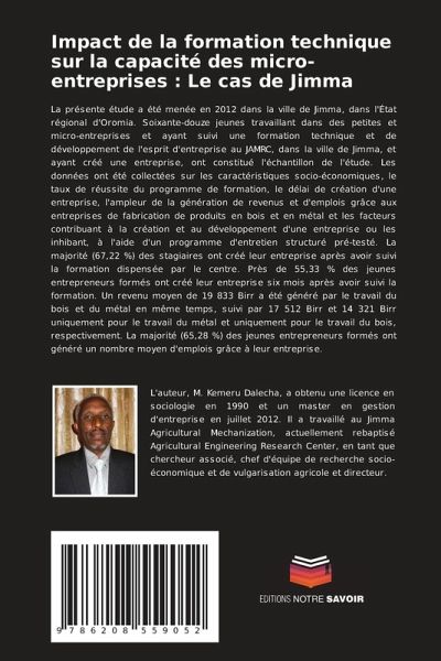 La présente étude a été menée en 2012 dans la ville de Jimma, dans l'État régional d'Oromia. Soixante-douze jeunes travaillant dans des petites et micro-entreprises et ayant suivi une formation technique et de développement de l'esprit d'entreprise au JAMRC, dans la ville de Jimma, et ayant créé une entreprise, ont constitué l'échantillon de l'étude. Les données ont été collectées sur les caractéristiques socio-économiques, le taux de réussite du programme de formation, le délai de création d'une entreprise, l'ampleur de la génération de revenus et d'emplois grâce aux entreprises de fabrication de produits en bois et en métal et les facteurs contribuant à la création et au développement d'une entreprise ou les inhibant, à l'aide d'un programme d'entretien structuré pré-testé. La majorité (67,22 %) des stagiaires ont créé leur entreprise après avoir suivi la formation dispensée par le centre. Près de 55,33 % des jeunes entrepreneurs formés ont créé leur entreprise six mois après avoir suivi la formation. Un revenu moyen de 19 833 Birr a été généré par le travail du bois et du métal en même temps, suivi par 17 512 Birr et 14 321 Birr uniquement pour le travail du métal et uniquement pour le travail du bois, respectivement. La majorité (65,28 %) des jeunes entrepreneurs formés ont généré un nombre moyen d'emplois grâce à leur entreprise.