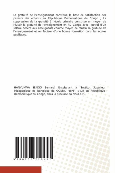 La gratuité de l'enseignement constitue la base de satisfaction des parents des enfants en République Démocratique du Congo ; La suppression de la gratuité à l'école primaire constitue un moyen de réussir la gratuité de l'enseignement en RD Congo avec l'octroi d'un salaire décent aux enseignants comme moyen de réussir la gratuité de l'enseignement et un facteur d'une bonne formation dans les écoles publiques.