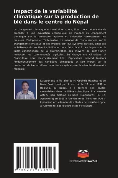 Le changement climatique est réel et en cours, il est donc nécessaire de procéder à une évaluation économique de l'impact du changement climatique sur la production agricole et d'identifier correctement les mesures d'adoption et d'atténuation. Le manque de connaissances sur le changement climatique et ses impacts sur leur système agricole, ainsi que la faiblesse du soutien institutionnel pour faire face à ces impacts et la faible connaissance de la diversification des moyens de subsistance menacent les communautés agricoles. Le changement climatique et l'agriculture sont inextricablement liés. L'agriculture dépend toujours fondamentalement des conditions climatiques et son impact sur la production de blé est d'une importance capitale pour la sécurité alimentaire mondiale.