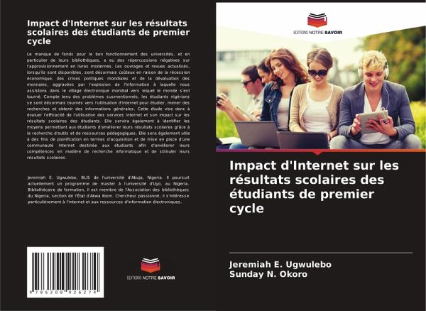 Le manque de fonds pour le bon fonctionnement des universités, et en particulier de leurs bibliothèques, a eu des répercussions négatives sur l'approvisionnement en livres modernes. Les ouvrages et revues actualisés, lorsqu'ils sont disponibles, sont désormais coûteux en raison de la récession économique, des crises politiques mondiales et de la dévaluation des monnaies, aggravées par l'explosion de l'information à laquelle nous assistons dans le village électronique mondial vers lequel le monde s'est tourné. Compte tenu des problèmes susmentionnés, les étudiants nigérians se sont désormais tournés vers l'utilisation d'Internet pour étudier, mener des recherches et obtenir des informations générales. Cette étude vise donc à évaluer l'efficacité de l'utilisation des services Internet et son impact sur les résultats scolaires des étudiants. Elle servira également à identifier les moyens permettant aux étudiants d'améliorer leurs résultats scolaires grâce à la recherche d'outils et de ressources pédagogiques. Elle sera également utile à des fins de planification en termes d'acquisition et de mise en place d'une communauté Internet destinée aux étudiants afin d'améliorer leurs compétences en matière de recherche informatique et de stimuler leurs résultats scolaires.