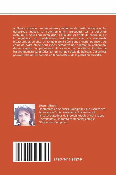 A l'heure actuelle, vus les sérieux problèmes de santé publique et les désastreux impacts sur l'environnement provoqués par la pollution métallique, nous nous intéressons à élucider les effets du cadmium sur la régulation du métabolisme hydrique ainsi que son éventuelle bioaccumulation chez un rongeur semi-désertique : Meriones shawi. Au cours de notre étude nous avons démontré une adaptation particulière de ce rongeur lui permettant de survivre les conditions hostiles de l'environnement caractérisé par un manque d'eau de boisson. Cet animal pourrait être utilisé comme un bioindicateur de la pollution terrestre.