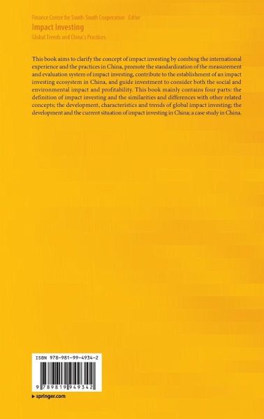 This book aims to clarify the concept of impact investing by combing the international experience and the practices in China, promote the standardization of the measurement and evaluation system of impact investing, contribute to the establishment of an impact investing ecosystem in China, and guide investment to consider both the social and environmental impact and profitability. This book mainly contains four parts: the definition of impact investing and the similarities and differences with other related concepts; the development, characteristics and trends of global impact investing; the development and the current situation of impact investing in China; a case study in China.