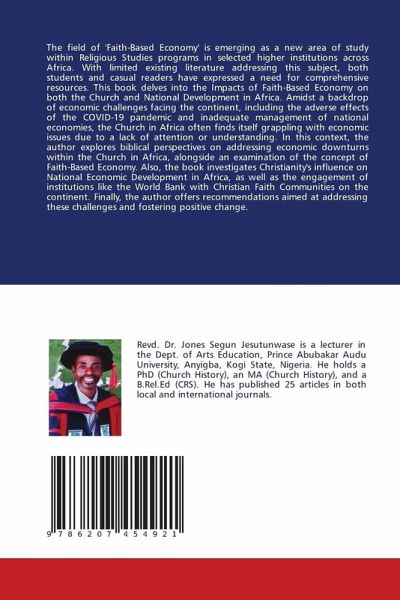 The field of 'Faith-Based Economy' is emerging as a new area of study within Religious Studies programs in selected higher institutions across Africa. With limited existing literature addressing this subject, both students and casual readers have expressed a need for comprehensive resources. This book delves into the Impacts of Faith-Based Economy on both the Church and National Development in Africa. Amidst a backdrop of economic challenges facing the continent, including the adverse effects of the COVID-19 pandemic and inadequate management of national economies, the Church in Africa often finds itself grappling with economic issues due to a lack of attention or understanding. In this context, the author explores biblical perspectives on addressing economic downturns within the Church in Africa, alongside an examination of the concept of Faith-Based Economy. Also, the book investigates Christianity's influence on National Economic Development in Africa, as well as the engagement of institutions like the World Bank with Christian Faith Communities on the continent. Finally, the author offers recommendations aimed at addressing these challenges and fostering positive change.
