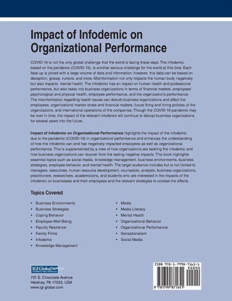 "This book offers research on the impact of excessive information circulated due to pandemic (COVID-19) in organizations' performance and how this Infodemic can impact negatively on employees as well as organizations' performance"--