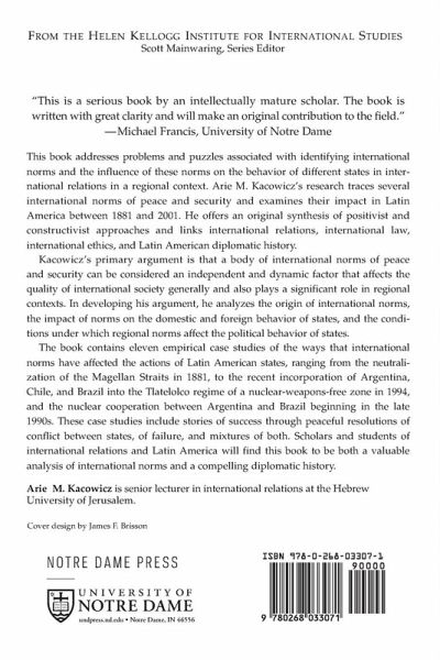 This book addresses problems and puzzles associated with identifying international norms and the influence of these norms on the behavior of different states in international relations in a regional context. Arie M. Kacowicz's research traces several international norms of peace and security and examines their impact in Latin America between 1881 and 2001. He offers an original synthesis of positivist and constructivist approaches and links international relations, international law, international ethics, and Latin American diplomatic history. Kacowicz's primary argument is that a body of international norms of peace and security can be considered an independent and dynamic factor that affects the quality of international society generally and also plays a significant role in regional contexts. In developing his argument, he analyzes the origin of international norms, the impact of norms on the domestic and foreign behavior of states, and the conditions under which regional norms affect the political behavior of states. The book contains eleven empirical case-studies of the ways that international norms have affected the actions of Latin American states, ranging from the neutralization of the Magellan Straits in 1881, to the recent incorporation of Argentina, Chile, and Brazil into the Tlatelolco regime of a nuclear-weapons-free-zone in 1994, and the nuclear cooperation between Argentina and Brazil beginning in the late 1990s. These case-studies include stories of success through peaceful resolutions of conflict between states, of failure, and mixtures of both. Scholars and students of international relations and Latin America will find this book to be both a valuable analysis of international norms and a compelling diplomatic history.
