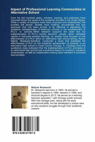 Over the last hundred years, scholars, parents, and politicians have theorized about the cause of the academic shortfall in the United States. While a variety of solutions have been proposed and implemented, the problem still persist. Studies have however, documented that one approach that has been proven to be effective in alleviating the academic backwardness of American schools is the establishment of PLC s in schools. While research supports the claim that the implementation of PLC s boosts teachers' morale, which ultimately results in improved student learning, no studies have focused on the effectiveness of a PLC within an alternative high school setting. Author Ndieze Nnawuchi therefore, conducted a study that examined the effectiveness of PLC on the academic achievement of students in an alternative high school in Cook County Chicago, IL. Findings from this qualitative study indicated that the implementation of PLC principles in an alternative high school had a profound impact on students' academic achievement, as well as collaboration among team members if practiced appropriately.