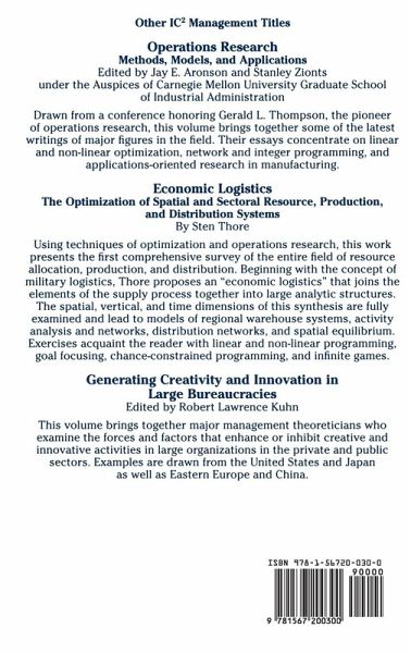 IC2 is a research institute which is active in developing programs in a variety of areas, from possible pricing strategies on the Internet to approaches to aid insurance regulators. This book examines the strategies and applications developed to forward these programs. What can research contribute in the way of innovative approaches to deal constructively with the burgeoning problems related to juvenile delinquency? How can the Internet and the World Wide Web be used to advance health care? How should the services of the Internet be priced when the US government ceases its support? These are some of the questions addressed in this volume illustrating the impact of IC2. The book is divided into three sections: the first examines new programs being developed by IC2; the second looks at new methodologies; and the third reviews new science. The research topics covered point to potential ways of bringing research into practical use. This book will be of interest to scholars and researchers interested in the improvement of management and social policy issues.