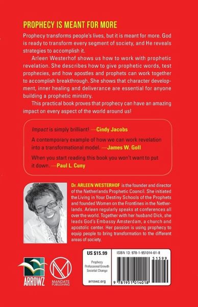 Prophecy is meant for more Prophecy transforms people’s lives, but it is meant for more. God is ready to transform every segment of society, and He reveals strategies to accomplish it. Arleen Westerhof shows us how to work with prophetic revelation. She describes how to give prophetic words, test prophecies, and how apostles and prophets can work together to accomplish breakthrough. She shows that character development, inner healing and deliverance are essential for anyone building a prophetic ministry. This practical book proves that prophecy can have an amazing impact on every aspect of the world around us!