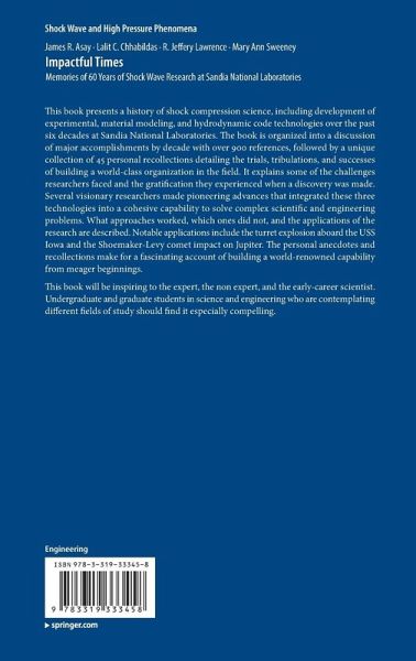 This book presents a history of shock compression science, including development of experimental, material modeling, and hydrodynamics code technologies over the past six decades at Sandia National Laboratories. The book is organized into a discussion of major accomplishments by decade with over 900 references, followed by a unique collection of 45 personal recollections detailing the trials, tribulations, and successes of building a world-class organization in the field. It explains some of the challenges researchers faced and the gratification they experienced when a discovery was made. Several visionary researchers made pioneering advances that integrated these three technologies into a cohesive capability to solve complex scientific and engineering problems. What approaches worked, which ones did not, and the applications of the research are described. Notable applications include the turret explosion aboard the USS Iowa and the Shoemaker-Levy comet impact on Jupiter.The personal anecdotes and recollections make for a fascinating account of building a world-renowned capability from meager beginnings.