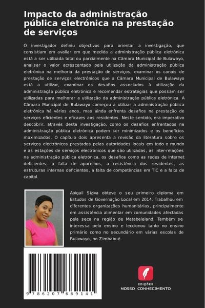 O investigador definiu objectivos para orientar a investigação, que consistiam em avaliar em que medida a administração pública eletrónica está a ser utilizada total ou parcialmente na Câmara Municipal de Bulawayo, analisar o valor acrescentado pela utilização da administração pública eletrónica na melhoria da prestação de serviços, examinar os canais de prestação de serviços electrónicos que a Câmara Municipal de Bulawayo está a utilizar, examinar os desafios associados à utilização da administração pública eletrónica e recomendar estratégias que possam ser utilizadas para melhorar a utilização da administração pública eletrónica. A Câmara Municipal de Bulawayo começou a utilizar a administração pública eletrónica há vários anos, mas ainda enfrenta desafios na prestação de serviços eficientes e eficazes aos residentes. Neste sentido, era imperativo descobrir, através desta investigação, como os desafios enfrentados na administração pública eletrónica podem ser minimizados e os benefícios maximizados. O capítulo dois apresenta a revisão da literatura sobre os serviços electrónicos prestados pelas autoridades locais em todo o mundo e as estações de serviços electrónicos que são utilizadas, as inter-relações na administração pública eletrónica, os desafios como as redes de Internet deficientes, a falta de aparelhos, a resistência dos residentes, as estruturas internas deficientes, a falta de competências em TIC e a falta de capital.