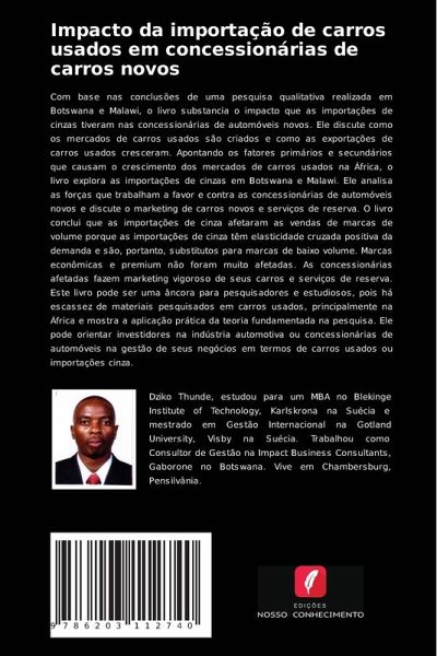 Com base nas conclusões de uma pesquisa qualitativa realizada em Botswana e Malawi, o livro substancia o impacto que as importações de cinzas tiveram nas concessionárias de automóveis novos. Ele discute como os mercados de carros usados ¿¿são criados e como as exportações de carros usados ¿¿cresceram. Apontando os fatores primários e secundários que causam o crescimento dos mercados de carros usados ¿¿na África, o livro explora as importações de cinzas em Botswana e Malawi. Ele analisa as forças que trabalham a favor e contra as concessionárias de automóveis novos e discute o marketing de carros novos e serviços de reserva. O livro conclui que as importações de cinza afetaram as vendas de marcas de volume porque as importações de cinza têm elasticidade cruzada positiva da demanda e são, portanto, substitutos para marcas de baixo volume. Marcas econômicas e premium não foram muito afetadas. As concessionárias afetadas fazem marketing vigoroso de seus carros e serviços de reserva. Este livro pode ser uma âncora para pesquisadores e estudiosos, pois há escassez de materiais pesquisados ¿¿em carros usados, principalmente na África e mostra a aplicação prática da teoria fundamentada na pesquisa. Ele pode orientar investidores na indústria automotiva ou concessionárias de automóveis na gestão de seus negócios em termos de carros usados ¿¿ou importações cinza.