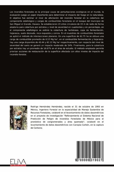 Los incendios forestales es la principal causa de perturbaciones ecológicas en el mundo, la evaluación juega un papel importante para determinar el impacto del fuego en la naturaleza. El objetivo fue estimar el nivel de afectación del incendio forestal en la cobertura del componente edafológico y cargas de combustibles forestales en el bosque del municipio de San Miguel el Grande, Oaxaca. Se establecieron 15 sitios circulares de 15 m de radio de forma aleatoria para cobertura por estratos y nivel de severidad en cuadrantes y en porcentajes, en el componente edafológico se estimó la cobertura de herbáceas, capa de fermentación, hojarasca, suelo desnudo, roca expuesta y ceniza. En el muestreo de combustibles forestales se aplicó el método de intersecciones planares. En una superficie de 62.75 ha se obtuvo una carga de combustible promedio de 6.53 Mg ha-1, en el combustible fermentación y hojarasca hay una carga disponible de 43.44 y 62.12 Mg ha-1 respectivamente, con respecto del nivel de severidad del suelo se generó un impacto moderado de 54%. Finalmente, para la cobertura por estratos hay un promedio de 16.67% en el área de estudio. El método empleado permite priorizar acciones de restauración de la superficie afectada con altos niveles de impacto del incendio forestal.