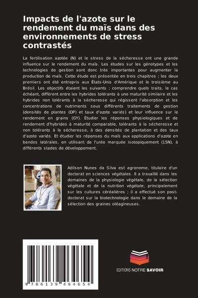 La fertilisation azotée (N) et le stress de la sécheresse ont une grande influence sur le rendement du maïs. Les études sur les génotypes et les technologies de gestion sont donc très importantes pour augmenter la production de maïs. Cette étude est présentée en trois chapitres ; les deux premiers ont été entrepris aux États-Unis d'Amérique et le troisième au Brésil. Les objectifs étaient les suivants : comprendre quels traits, le cas échéant, diffèrent entre les hybrides tolérants à une maturité similaire et les hybrides non tolérants à la sécheresse qui régissent l'absorption et les concentrations de nutriments sous différents traitements de gestion (densités de plantes (DP) et taux d'azote variés) et leur influence sur le rendement en grains (GY). Étudier les réponses physiologiques et de rendement d'hybrides à maturité comparable, tolérants à la sécheresse et non tolérants à la sécheresse, à des densités de plantation et des taux d'azote variés. Et étudier les réponses du maïs aux applications d'azote en bandes latérales, en utilisant de l'urée marquée isotopiquement (15N), à différents stades de développement.