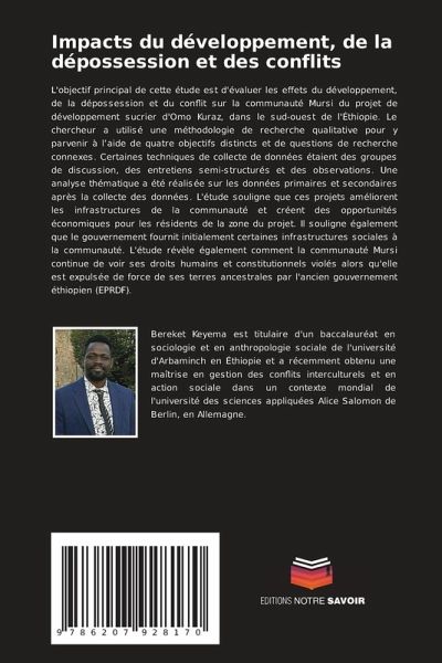 L'objectif principal de cette étude est d'évaluer les effets du développement, de la dépossession et du conflit sur la communauté Mursi du projet de développement sucrier d'Omo Kuraz, dans le sud-ouest de l'Éthiopie. Le chercheur a utilisé une méthodologie de recherche qualitative pour y parvenir à l'aide de quatre objectifs distincts et de questions de recherche connexes. Certaines techniques de collecte de données étaient des groupes de discussion, des entretiens semi-structurés et des observations. Une analyse thématique a été réalisée sur les données primaires et secondaires après la collecte des données. L'étude souligne que ces projets améliorent les infrastructures de la communauté et créent des opportunités économiques pour les résidents de la zone du projet. Il souligne également que le gouvernement fournit initialement certaines infrastructures sociales à la communauté. L'étude révèle également comment la communauté Mursi continue de voir ses droits humains et constitutionnels violés alors qu'elle est expulsée de force de ses terres ancestrales par l'ancien gouvernement éthiopien (EPRDF).