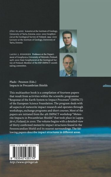 The present volume is the result of activities within the scientific programme "Response of the Earth System to Impact Processes" (IMP ACT) of the European Science Foundation (ESF). The ESF is an association of 67 national member organisations devoted to scientific research in 24 European countries. The IMPACT programme is aimed at understanding meteorite impact processes and their effects on the Earth System. Launched in 1998 for a duration of 5 years, the programme is now supported by 15 ESF membership countries. The programme of meteorite impact research and operates through deals with all aspects workshops, exchange programs, and short courses. The 4th IMPACT programme workshop "Meteorite Impacts in Precambrian Shields" took place on May 24-28, 2000, in Lappajarvi, western Finland. A total of 84 scientists from 19 countries from Europe, North America, and Africa participated in the workshop. During the workshop, 43 oral, 31 poster, and several video presentations were made. An exhibition of impactite rocks from Finnish craters and two excursions were organised. The excursion to impact melt rock outcrops of the Lappajarvi structure took place during the workshop. The Karikkoselka and Saaksjarvi impact structures in south-central Finland were visited during the post-meeting excursion.