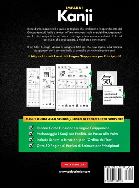 Semplicemente la nostra migliore cartella di lavoro per principianti che imparano il giapponese Kanji N5! È ricco di informazioni pratiche e utili e guide passo passo per rendere l'apprendimento più facile e veloce:Diagrammi dell'ordine delle corse e istruzioni di scrittura Kanji Flashcard da ritagliare e conservare Oltre 80 pagine di pratica di calligrafia giapponese Introduzione ai sistemi alfabetici del Giappone Perfetto per principianti, elementari e livelli di miglioramento Questo libro giapponese è adatto sia per adulti che per bambini che hanno imparato l'hiragana e il katakana e ora vogliono iniziare a imparare il kanji o per coloro che desiderano migliorare le proprie capacità di scrittura pronti per imparare il kanji. È stato progettato con esercizi di autoapprendimento e pagine pratiche su come scrivere. Abbiamo incluso un set di pagine di Kanji N5 Flash Card che puoi fotocopiare o ritagliare e conservare! Il tuo tutor, George Tanaka, ti insegnerà tutto ciò che devi sapere sugli script Kanji, con dettagli sufficienti per iniziare rapidamente! Che tu viva in patria o all'estero, insegnando a te stesso o semplicemente cercando un regalo per un amico di lingua straniera, questo libro è il modo migliore per iniziare a imparare il giapponese. Fai clic su "Aggiungi al carrello" per iniziare il tuo viaggio!