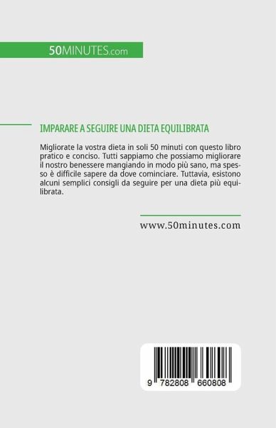 Migliorate la vostra dieta in soli 50 minuti con questo libro pratico e conciso. Tutti sappiamo che possiamo migliorare il nostro benessere mangiando in modo più sano, ma spesso è difficile sapere da dove cominciare. Tuttavia, esistono alcuni semplici consigli da seguire per una dieta più equilibrata. In questo libro scoprirete quali sono le misure che potete adottare per migliorare la vostra dieta quotidiana. Include anche suggerimenti per integrare gli alimenti biologici nella vostra dieta e una spiegazione di base della scienza che sta alla base di questi consigli, in modo da ottenere tutto ciò che vi serve per migliorare il vostro benessere generale.