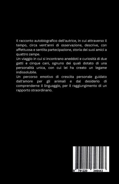 Un racconto autobiografico dell'autrice, in cui attraverso il tempo, circa vent'anni di osservazione, descrive, con affettuosa e sentita partecipazione, le storie dei suoi amici a quattro zampe. Un viaggio in cui si incontrano aneddoti e curiosità di due gatti e cinque cani, ognuno dei quali dotato di una personalità unica, con cui lei ha creato un legame indissolubile. Un percorso emotivo e di crescita personale guidato dall'amore per gli animali e dal desiderio di comprenderne il linguaggio, per il raggiungimento di un rapporto straordinario.