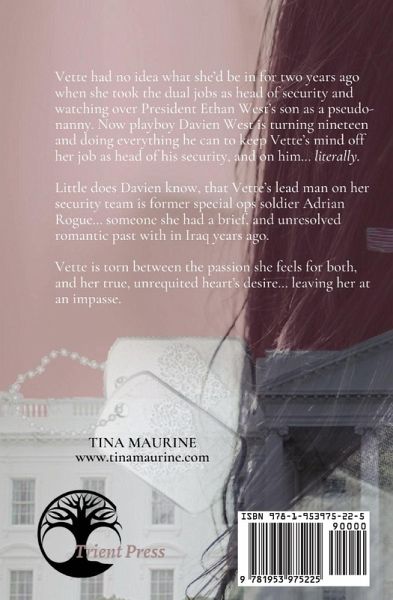 Two years ago, when Vette took the dual jobs as head of security and watching over President Ethan West's son as a pseudo-nanny, she had no idea what she'd be in for. Now, playboy Davien West is turning nineteen and doing everything he can to keep Vette's mind off her jobs... and on him.Little does Davien know that the lead man on Vette's security team is former special ops soldier Adrian Rogue... someone with whom she had a brief and unresolved romantic past years ago in Iraq.The passion Vette feels for both of them, and her true, unrequited heart's desire, leave her at an impasse.