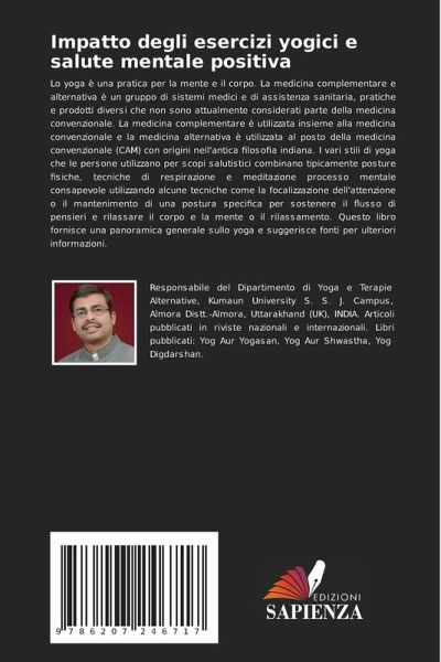 Lo yoga è una pratica per la mente e il corpo. La medicina complementare e alternativa è un gruppo di sistemi medici e di assistenza sanitaria, pratiche e prodotti diversi che non sono attualmente considerati parte della medicina convenzionale. La medicina complementare è utilizzata insieme alla medicina convenzionale e la medicina alternativa è utilizzata al posto della medicina convenzionale (CAM) con origini nell'antica filosofia indiana. I vari stili di yoga che le persone utilizzano per scopi salutistici combinano tipicamente posture fisiche, tecniche di respirazione e meditazione processo mentale consapevole utilizzando alcune tecniche come la focalizzazione dell'attenzione o il mantenimento di una postura specifica per sostenere il flusso di pensieri e rilassare il corpo e la mente o il rilassamento. Questo libro fornisce una panoramica generale sullo yoga e suggerisce fonti per ulteriori informazioni.