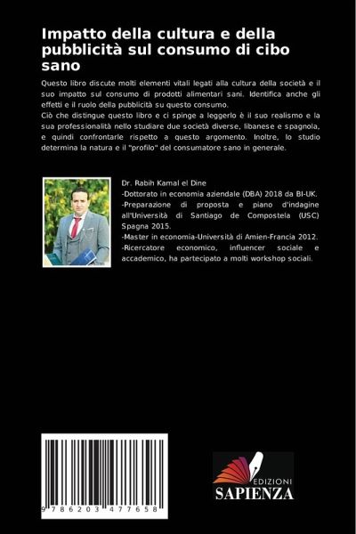 Questo libro discute molti elementi vitali legati alla cultura della società e il suo impatto sul consumo di prodotti alimentari sani. Identifica anche gli effetti e il ruolo della pubblicità su questo consumo.Ciò che distingue questo libro e ci spinge a leggerlo è il suo realismo e la sua professionalità nello studiare due società diverse, libanese e spagnola, e quindi confrontarle rispetto a questo argomento. Inoltre, lo studio determina la natura e il "profilo" del consumatore sano in generale.