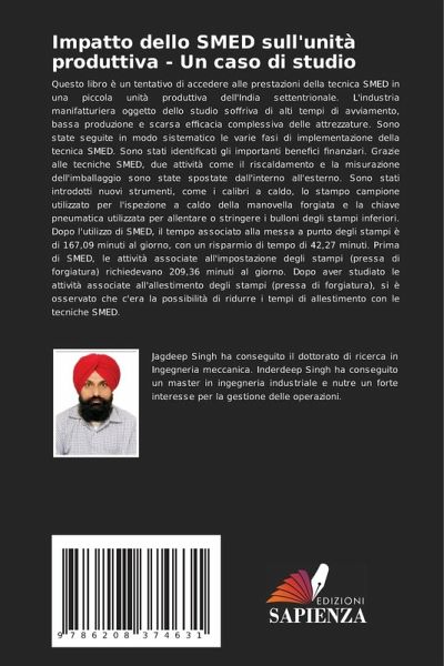 Questo libro è un tentativo di accedere alle prestazioni della tecnica SMED in una piccola unità produttiva dell'India settentrionale. L'industria manifatturiera oggetto dello studio soffriva di alti tempi di avviamento, bassa produzione e scarsa efficacia complessiva delle attrezzature. Sono state seguite in modo sistematico le varie fasi di implementazione della tecnica SMED. Sono stati identificati gli importanti benefici finanziari. Grazie alle tecniche SMED, due attività come il riscaldamento e la misurazione dell'imballaggio sono state spostate dall'interno all'esterno. Sono stati introdotti nuovi strumenti, come i calibri a caldo, lo stampo campione utilizzato per l'ispezione a caldo della manovella forgiata e la chiave pneumatica utilizzata per allentare o stringere i bulloni degli stampi inferiori. Dopo l'utilizzo di SMED, il tempo associato alla messa a punto degli stampi è di 167,09 minuti al giorno, con un risparmio di tempo di 42,27 minuti. Prima di SMED, le attività associate all'impostazione degli stampi (pressa di forgiatura) richiedevano 209,36 minuti al giorno. Dopo aver studiato le attività associate all'allestimento degli stampi (pressa di forgiatura), si è osservato che c'era la possibilità di ridurre i tempi di allestimento con le tecniche SMED.
