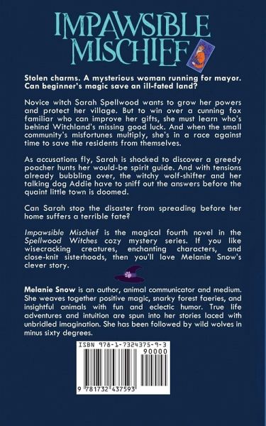 Stolen charms. A mysterious woman running for mayor. Can beginner's magic save an ill-fated land? Novice witch Sarah Spellwood wants to grow her powers and protect her village. But to win over a cunning fox familiar who can improve her gifts, she must learn who's behind Witchland's missing good luck. And when the small community's misfortunes multiply, she's in a race against time to save the residents from themselves. As accusations fly, Sarah is shocked to discover a greedy poacher hunts her would-be spirit guide. And with tensions already bubbling over, the witchy wolf-shifter and her talking dog Addie have to sniff out the answers before the quaint little town is doomed. Can Sarah stop the disaster from spreading before her home suffers a terrible fate? Impawsible Mischief is the magical fourth novel in the Spellwood Witches cozy mystery series. If you like wisecracking creatures, enchanting characters, and close-knit sisterhoods, then you'll love Melanie Snow's clever story. Buy Impawsible Mischief to cast out evil and mayhem today!