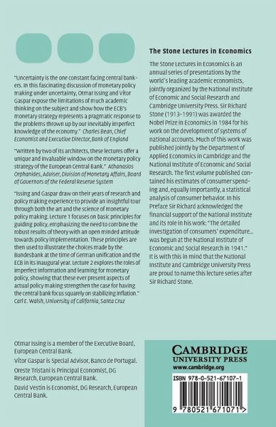 Based on lectures given as part of The Stone Lectures in Economics, this book discusses the problem of formulating monetary policy in practice, under the uncertain circumstances which characterize the real world. How should central banks set monetary policy? In which way should they take uncertainty into account when designing a monetary policy strategy? Should they respond to shocks aggressively or cautiously? These questions are discussed both with reference to the experience of the Bundesbank and of the European Central Bank and in relation to a simple stylized economic model.
