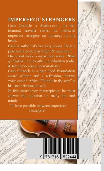 INSIDE: IMPERFECT STRANGERS FIDDLE ON SKELETONS OF THE MIND. No matter where you come from, surely as you are human with blood flowing through your heart, you are booked on this journey. Just remember there are no seat belts, life jackets or waist ropes to stop you going overboard. Dr. Mary Jo, a general physician in London, was introduced to Al, a confident, handsome, University of Nottingham doctoral researcher working on ground-breaking pneumatic prototypes. Where this would lead them both, they do not know. Al's challenge to breakthrough a work barrier may not be the only mountain he is facing. His wavering mind may be the object in the locket of another woman. There is also a prophecy which must be fulfilled. Are they equally trying to save his lost heart in some stranger ways! In this volume of the short stories, there is a fiddle on the skeletons of the mind. Shall we let it play?