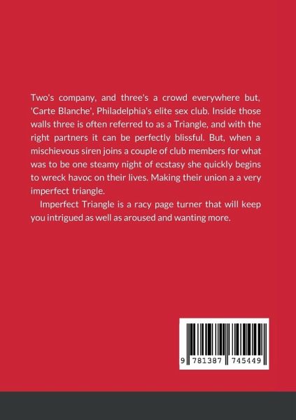 Two's company and three's a crowd everywhere but, 'Carte Blanche', Philadelphia's most elite sex club. Inside those walls three is often referred to as a 'Triangle'. A Triangle with the right partners can be perfect, but, see what happens when a mischievous siren joins a newlywed couple for what was to be one steamy night of ecstasy. She quickly begins to wreck havoc on their lives. Making their union a very imperfect triangle. Imperfect Triangle is a racy page turner that will keep you intrigued as well as aroused and wanting for more.