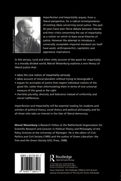 This text argues, from a liberal perspective, for a radical re- interpretation of existing ideas concerning social justice. Since the 1980s there has been debate between liberals and their critics, Concerning The Use Of Impartiality As A Notion On Which To Base Social theories of justice. In introducing an impartial standard of the right, the implications are often sexist, anthropocentric, capitalistic and oppressive. Wissenberg argues that this does not mean we should abandon the ideal of impartiality and defends the thesis that impartiality and the liberal project can be saved.; The book explores a liberal theory of Justice That Takes The Core Notion Of Impartiality Seriously; That Takes account of moral pluralism without trying to downgrade it or reduce it to the rank of a secondary problem; that argues for principles of justice Respecting Individual Notions Of The Good Life Rather Than Reformulating them in terms of one universal measure of the good or the right; that cherishes plurality, diversity and tolerance instead of uniformity and moral indifference.