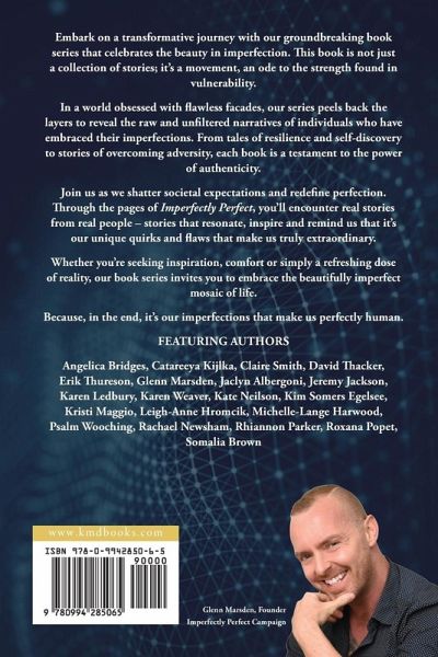 Embark on a transformative journey with our groundbreaking book series that celebrates the beauty in imperfection. This book is not just a collection of stories; it's a movement, an ode to the strength found in vulnerability. In a world obsessed with flawless facades, our series peels back the layers to reveal the raw and unfiltered narratives of individuals who have embraced their imperfections. From tales of resilience and self-discovery to stories of overcoming adversity, each book is a testament to the power of authenticity. Join us as we shatter societal expectations and redefine perfection. Through the pages of Imperfectly Perfect, you'll encounter real stories from real people - stories that resonate, inspire and remind us that it's our unique quirks and flaws that make us truly extraordinary. Whether you're seeking inspiration, comfort or simply a refreshing dose of reality, our book series invites you to embrace the beautifully imperfect mosaic of life. Because, in the end, it's our imperfections that make us perfectly human. ¿¿¿FEATURING AUTHORS Angelica Bridges, Catareeya Kijlka, Claire Smith, David Thacker, Erik Thureson, Glenn Marsden, Jaclyn Albergoni, Jeremy Jackson, Karen Ledbury, Karen Weaver, Kate Neilson, Kim Somers Egelsee, Kristi Maggio, Leigh-Anne Hromcik, Michelle-Lange Harwood, Psalm Wooching, Rachael Newsham, Rhiannon Parker, Roxana Popet, Somalia Brown