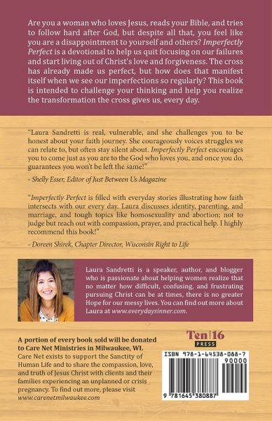 Are you a woman who loves Jesus, reads your Bible, and tries to follow hard after God, but despite all that, you feel like you are a disappointment to yourself and others? Imperfectly Perfect is a devotional to help us quit focusing on our failures and start living out of Christ's love and forgiveness. The cross has already made us perfect, but how does that manifest itself when we see our imperfections so regularly? This book is intended to challenge your thinking and help you realize the transformation the cross gives us, every day.