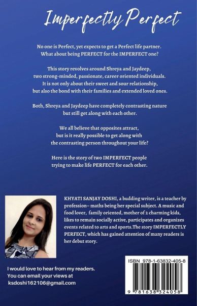 IMPERFECTLY PERFECT No one is Perfect, yet expects to get a Perfect life partner. What about being PERFECT for the IMPERFECT one? This story revolves around Shreya and Jaydeep, two strong-minded, passionate, career oriented individuals. It is not only about their sweet and sour relationship, but also the bond with their families and extended loved ones. Both, Shreya and Jaydeep have completely contrasting nature but still get along with each other. We all believe that opposites attract, but is it really possible to get along with the contrasting person throughout your life? Here is the story of two IMPERFECT people trying to make life PERFECT for each other.