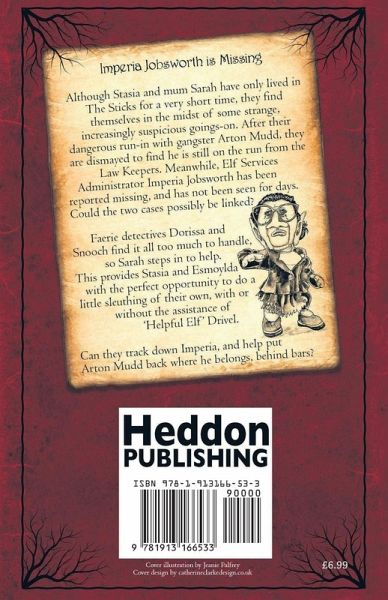 Although Stasia and mum Sarah have only lived in The Sticks for a very short time, they find themselves in the midst of some strange, increasingly suspicious goings-on. After their dangerous run-in with gangster Arton Mudd, they are dismayed to find he is still on the run from the Law Keepers. Meanwhile, Elf Services Administrator Imperia Jobsworth has been reported missing, and has not been seen for days. Could the two cases possibly be linked? Faerie detectives Dorissa and Snooch find it all too much to handle, so Sarah steps in to help. This provides Stasia and Esmoylda with the perfect opportunity to do a little sleuthing of their own, with or without the assistance of 'Helpful Elf' Drivel. Can they track down Imperia, and help put Arton Mudd back where he belongs, behind bars?