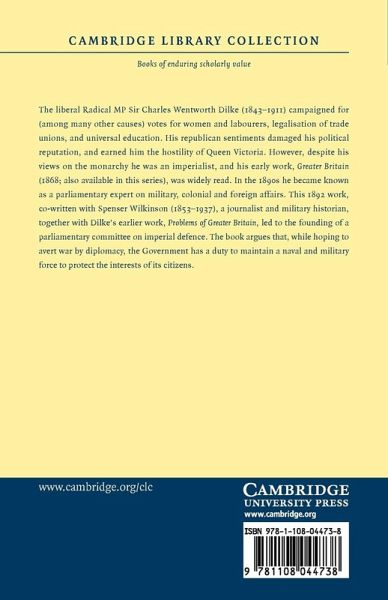 The liberal Radical MP Sir Charles Wentworth Dilke (1843-1911) campaigned for (among many other causes) votes for women and labourers, legalisation of trade unions and universal education. His republican sentiments damaged his political reputation, and earned him the hostility of Queen Victoria. However, despite his views on the monarchy he was an imperialist, and his early work, Greater Britain (1868; also available in this series), was widely read. In the 1890s he became known as a parliamentary expert on military, colonial and foreign affairs. This 1892 work, co-written with Spenser Wilkinson (1853-1937), a journalist and military historian, together with Dilke's earlier work, Problems of Greater Britain, led to the founding of a parliamentary committee on imperial defence. The book argues that, while hoping to avert war by diplomacy, the Government has a duty to maintain a naval and military force to protect the interests of its citizens.