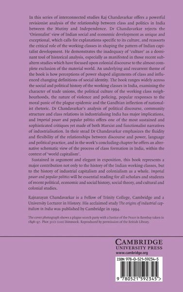 In this series of interconnected essays, Rajnarayan Chandavarkar offers a powerful revisionist analysis of the relationship between class and politics in India between the Mutiny and Independence. Dr Chandavarkar rejects the 'Orientalist' view of Indian social and economic development as exceptional and somehow distinct from that prevailing in capitalist societies elsewhere, and reasserts the critical role of the working classes in shaping the pattern of Indian capitalist development. Sustained in argument and elegant in exposition, these essays represent a major contribution not only to the history of the Indian working classes, but to the history of industrial capitalism and colonialism as a whole. Imperial Power and Popular Politics will be essential reading for all scholars and students of recent political, economic, and social history, social theory, and cultural and colonial studies.