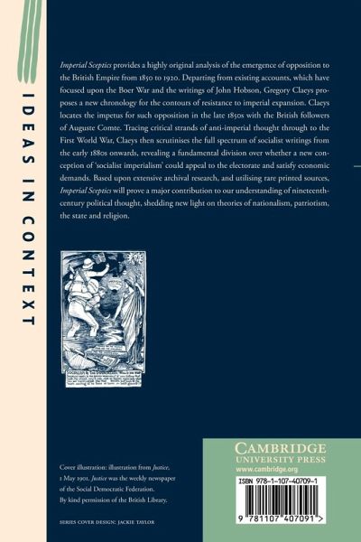 Imperial Sceptics provides a highly original analysis of the emergence of opposition to the British Empire from 1850-1920. Departing from existing accounts, which have focused upon the Boer War and the writings of John Hobson, Gregory Claeys proposes a new chronology for the contours of resistance to imperial expansion. Claeys locates the impetus for such opposition in the late 1850s with the British followers of Auguste Comte. Tracing critical strands of anti-imperial thought through to the First World War, Claeys then scrutinises the full spectrum of socialist writings from the early 1880s onwards, revealing a fundamental division over whether a new conception of 'socialist imperialism' could appeal to the electorate and satisfy economic demands. Based upon extensive archival research, and utilising rare printed sources, Imperial Sceptics will prove a major contribution to our understanding of nineteenth-century political thought, shedding new light on theories of nationalism, patriotism, the state and religion.
