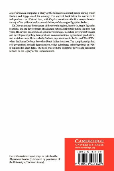 Imperial Sudan completes a study of the formative colonial period during which Britain and Egypt ruled the country. The previous volume, the acclaimed Empire on the Nile: The Anglo-Egyptian Sudan, 1898-1934, appeared in 1986. The current book takes the narrative to independence in 1956 and thus, with Empire, constitutes the first comprehensive survey of the political and economic history of the Anglo-Egyptian Sudan. Dr Daly examines the structure of the colonial regime, its role in Anglo-Egyptian relations, and the development of Sudanese nationalist politics during the inter-war years. He surveys economic and social developments, including government finance and development policy, transport and communications, agricultural production, and social services. He reveals the Sudan's important role in the Second World War, when the Sudan Defence Force held back Italian invasion. The complicated path to self-government and self-determination, which culminated in independence in 1956, is explained in great detail. The book ends with the transfer of power, and the author reflects on the legacy of the Condominium.