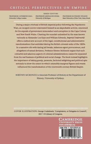 During a major overhaul of British imperial policy following the Napoleonic Wars, an escaped convict reinvented himself as an improbable activist, renowned for his exposés of government misconduct and corruption in the Cape Colony and New South Wales. Charting scandals unleashed by the man known variously as Alexander Loe Kaye and William Edwards, Imperial Underworld offers a radical new account of the legal, constitutional and administrative transformations that unfolded during the British colonial order of the 1820s. In a narrative rife with daring jail breaks, infamous agents provocateurs, and allegations of sexual deviance, Professor Kirsten McKenzie argues that such colourful and salacious aspects of colonial administrations cannot be separated from the real business of political and social change. The book instead highlights the importance of taking gossip, paranoia, factional infighting and political spin seriously to show the extent to which ostensibly marginal figures and events influenced the transformation of the nineteenth-century British Empire.
