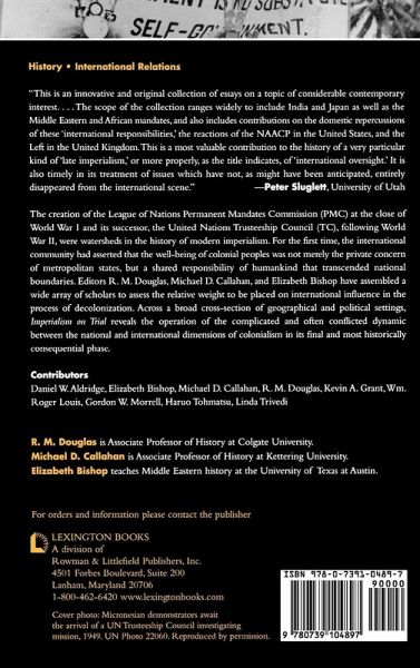 Chapter 1 Foreword Chapter 2 Editors' Introduction Chapter 3 "Mandated Territories Are Not Colonies": Britain, France, and Africa in the 1930s Chapter 4 A Question of Trust: The Government of India, the League of Nations, and Mohandas Gandhi Chapter 5 Economic Imperialism in the Palestine Mandate Chapter 6 Japan's Retention of the South Seas Mandate, 1922-1947 Chapter 7 Black Powerlessness in a Liberal Era: The NAACP, Anti-Colonialism, and the United Nations, 1942-1945 Chapter 8 A Higher State of Imperialism? The Big Three, the UN Trusteeship Council and the Early Cold War Chapter 9 An Offer They Couldn't Refuse: The British Left, Colonies, and International Trusteeship, 1941-1951
