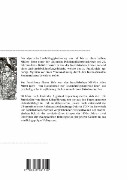 Der algerische Unabhängigkeitskrieg war mit bis zu einer halben Million Toten eines der blutigsten Dekolonialisierungskriege des 20. Jahrhunderts. Geführt wurde er von der französischen Armee anhand einer Aufstandsbekämfpungsdoktrin, welche das zu Frankreich gehörige Algerien vor einer Vereinnahmung des Internationalen Kommunismus bewahren sollte. Zur Erreichung dieses Ziels war den französischen Militärs jedes Mittel recht - von Maßnahmen zur Bevölkerungskontrolle über psychologische Kriegführung bis hin zu mehreren Putschversuchen. 50 Jahre nach Ende des Algerienkrieges inspirierten sich die US-Streitkräfte von dieser Kriegführung, um die aus den Fugen geratene Sicherheitslage im Irak zu stabilisieren. Dieses Buch untersucht die US-amerikanische Aufstandsbekämpfungs-Doktrin COIN in historisch und sozialwissenschaftlich vergleichender Perspektive mit der französischen Doktrin des revolutionären Krieges der 1950er Jahre - zwei Doktrinen zur zwangsweisen Reintegration peripherer Gebiete in das westlich geprägte Weltsystem.