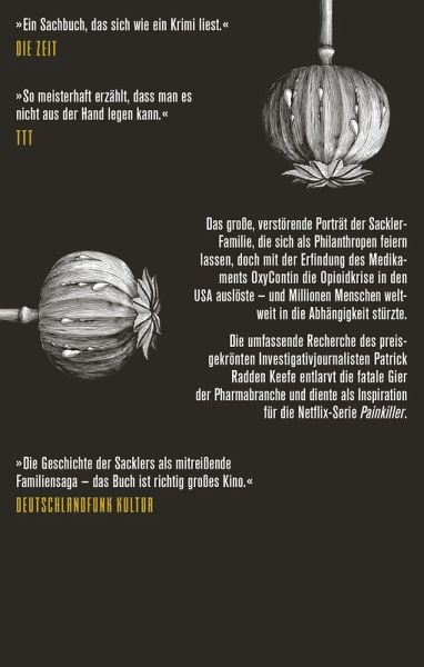 Platz 2: ZEIT/DLF/ZDF Sachbuchbestenliste im November 2022 "Ein Sachbuch, das sich wie ein Krimi liest." Die ZEIT, 24.11.2022 "Patrick Radden Keefe erzählt die Geschichte als mitreißende Familiensaga - das Buch ist richtig großes Kino." Susanne Billig, Deutschlandfunk Kultur, 24.11.2022 "Keefe gelingt eine meisterhafte Balance zwischen Anekdoten und Zeitgeschichte, Medizin und Politik, Firmenanalyse und privaten Tragödien." Linus Schöpfer, NZZ Bücher am Sonntag, 30.03.2025 "Ein brillantes Sachbuch." Linus Schöpfer, NZZ, 23.11.2022 "Eine besonders düstere Familiensaga." FAZ,18.10.2022 "Patrick Radden Keefes Buch 'Imperium der Schmerzen' ist analytisch klar, zugleich mit großer kalter Wut geschrieben und entwickelt deshalb einen unglaublichen Sog. Tiefgehend, genau, schockierend und unterhaltsam." Friedrich Müller, Bayern 2 Diwan, 18.12.2022 "Chemisch verwandt mit Heroin, doppelt so stark wie Morphium - OxyContin: Imperium der Schmerzen - ein Buch, das wütend und fassungslos macht und dabei so meisterhaft erzählt, das man es nicht aus der Hand legen mag." ARD ttt "Mit der weltweiten Verehrung der Familie Sackler als große Kunstmäzene ist es nun vorbei - nachzulesen das alles im packenden Buch Imperium der Schmerzen." Max Moor, ARD ttt "Dieses Buch kann man aus vielen Gründen lesen; weil es glänzend geschrieben ist und weil es einfach eine ungeheure breite Fülle an Themen, die alle für sich spannend sind, behandelt." Ijoma Mangold, ZEIT Feuilleton Podcast "Die sogenannte Gegenwart", 15.11.2022 "Ein episches Buch. 'Imperium der Schmerzen' ist ein erzählendes Sachbuch im besten amerikanischen Sinne." Marc Reichwein, WELTplus, 23.10.2022 "Keefe erzählt eine faszinierende Familiensaga, die sich über mehrere Jahrzehnte erstreckt." Yasemin Ergin, ARD ttt "Es ist eine meisterhaft geschriebene Reportage, die beim Leser Entsetzen auslöst, über maßlose Profitgier und Gleichgültigkeit gegenüber dem Leiden, auf dem eines der größten Familienvermögen der Welt beruhte. Dieses Buch über einen verheerenden Arzneimittelskandal liefert uns Gesichter und Verantwortliche. Es ist zugleich eine minutiös durchleuchtete Familiengeschichte über vier Generationen, die der Familie Sackler. Sie hat alle Merkmale, die wir aus der Romanliteratur kennen: Aufstieg, Hybris und Fall einer Dynastie mit barock anmutendem Privatleben und erbitterten, mit machiavellistischen Methoden ausgetragenen Kämpfen um Vermögen, Reputation und Einfluss." Günther Haller, Die Presse am Sonntag (A), 12.2.2023 "Keefes Buch liest sich wie ein Sittengemäldes des weltweiten Pharma-Kapitalismus und gibt dazu noch einen Einblick in die US-Medizingeschichte. Unbedingt lesenswert." Marc Ottiker, Der Freitag, 20.10.2022 "Keefe ist ein investigativer Journalist mit literarischem Anspruch; ein profunder Rechercheur mit Freude an Geschichten. Keefe verschafft uns einen Panoramablick auf die Logik der Pharmabranche, ihren Hochmut, ihre Gier, aber auch auf 100 Jahre US-Psychiatrie und natürlich auf den Kapitalismus." Tom Schimmeck, Deutschlandfunk Andruck, 4.1.23 "Sehr packend. Patrick Radden Keefe erzählt ganz nah an den Figuren. Ein massives Unrecht braucht ein massives Buch." Susanne Billig, Deutschlandfunk Kultur, 16.11.2022 "Keefe erzählt journalistisch, wenn er wissenschaftliche, juristische Hintergründe erläutert, aber das Buch hat immer wieder auch literarische Passagen. Patrick R. Keefe wollte eine Familiensaga schreiben und das ist ihm gelungen. Es sind vor allem die Psychogramme von Menschen, die sich vormachen, der Menschheit einen Dienst zu erweisen, aber gleichzeitig über die Gefahren schweigen, damit sie ungehindert ihr Geschäft machen können. Das ist beim Lesen kaum zu ertragen; ein Lehrstück über die Abgründe des Kapitalismus." Thomas Böhm, rbb radioeins, 13.10.22 "Brillant, erschütternd und fesselnd erzählt, wie die Sacklers zu ihrem Reichtum kamen und wie sie ihn ins Unermessliche mehrten." Sonja Niemann, Brigitte, 12.10.2022 "'Imperium der Schmerzen' ähnelt der Anlage und Erzählweise nach Thomas Manns 'Buddenbrooks', ist also ausgesprochen literarisch erzählt. Die Katastrophe bekommt Gesichter, Verantwortliche." Johannes Franzen, Die Zeit, September 2021